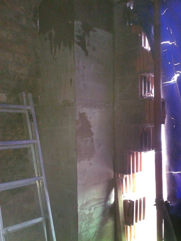 Имеется бетонная колонна. В данном помещении произошел пожар, в результате чего верхний слой бетона потерял проектную прочность и в некоторых местах «отщелкнулся».