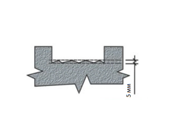 Расчеканка швов и трещин на ширину 4-10 см (в зависимости от расстояния между плитами и геометрии трещин) и глубину 2-5 см (до бетона, обеспечивающего прочность (не менее 15 Мпа)), вертикальное оконтуривание и удаление ослабленного бетона для ремонта кромок плит (см. рис.). При слабом основании необходимо предусмотреть анкеровку.
